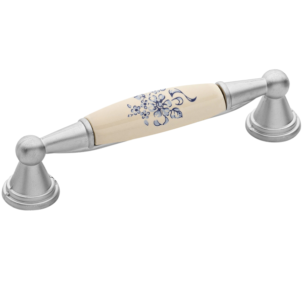 Μία κλασική vintage λαβή επίπλου με πορσελάνη για έπιπλα μπάνιου, κουζίνας και σαλονιού, σε νίκελ σατινέ - γαλάζιο χρώμα, που χαρακτηρίζεται για την ποιότητα και την κομψότητά της.