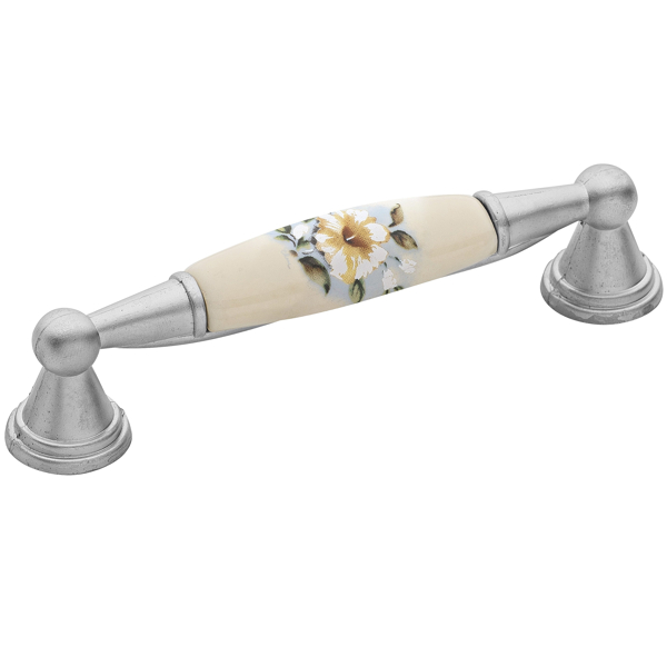 Μία κλασική vintage λαβή επίπλου με πορσελάνη για έπιπλα μπάνιου, κουζίνας και σαλονιού, σε νίκελ σατινέ - μπλε χρώμα, που χαρακτηρίζεται για την ποιότητα και την κομψότητά της.