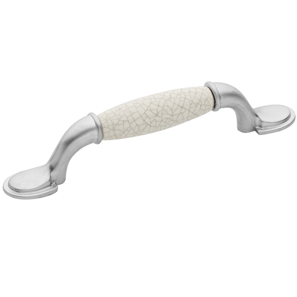 Μία κλασική vintage λαβή επίπλου με πορσελάνη για έπιπλα μπάνιου, κουζίνας και σαλονιού, σε νίκελ σατινέ - κρακελέ χρώμα, που χαρακτηρίζεται για την ποιότητα και την κομψότητά της.