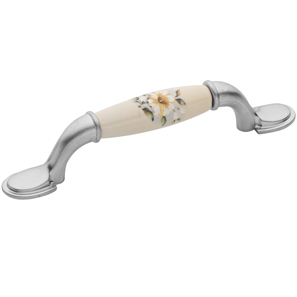 Μία κλασική vintage λαβή επίπλου με πορσελάνη για έπιπλα μπάνιου, κουζίνας και σαλονιού, σε νίκελ σατινέ - μπλε χρώμα, που χαρακτηρίζεται για την ποιότητα και την κομψότητά της.