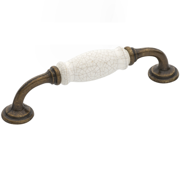 Μία κλασική vintage λαβή επίπλου με πορσελάνη για έπιπλα μπάνιου, κουζίνας και σαλονιού, σε αντικέ - κρακελέ χρώμα, που χαρακτηρίζεται για την ποιότητα και την κομψότητά της.