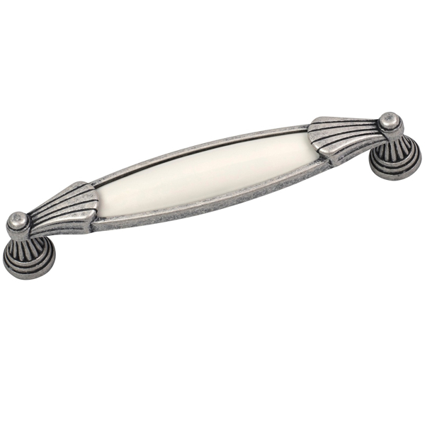 Μία κλασική vintage λαβή επίπλου με πορσελάνη για έπιπλα μπάνιου, κουζίνας και σαλονιού, σε old silver - μπεζ χρώμα, που χαρακτηρίζεται για την ποιότητα και την κομψότητά της.