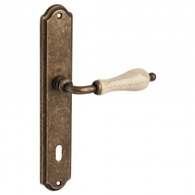 Brass door handle on plate...