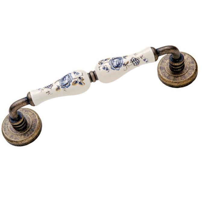 Classic and traditional antique brass pull handle. Made of top quality brass and Italian porcelain with blue flower pattern. The product is supplied to the customer in the manufacturer's box. Each pack contains 1 piece with the appropriate accessories and their rosettes. Suitable for all weather conditions.